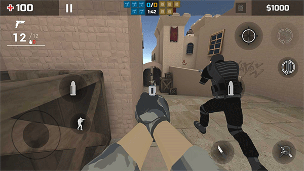 而在玩法上,游戏内现有经典模式和枪战模式两种,在经典模式下,有两支队伍,每支队伍的主要目的是击败敌人,玩家可以展示自己的技巧和速度,或使用战术。而在枪战模式下共有16 个级别,每个级别都有特定的武器,最先完成最高级别的玩家获胜。喜欢的朋友不妨下载试试看,相信一定不会让你失望的。