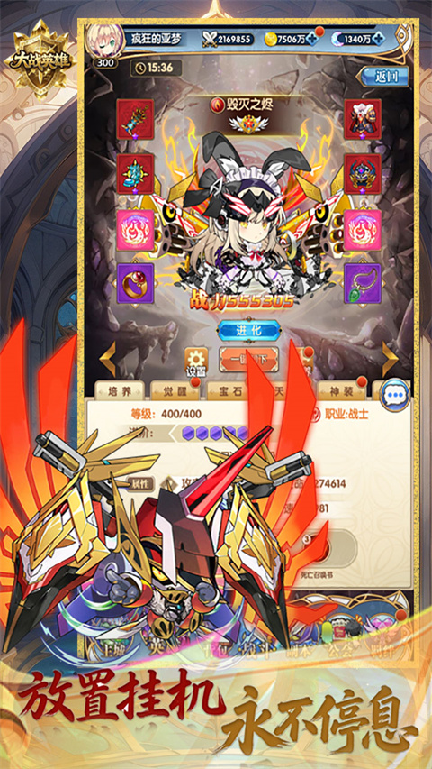 大战英雄是采用二次元题材为核心打造的一款卡牌竖屏放置手游。在游戏内以独特的日系次元画风构造,为玩家描绘了一场五大阵营对战邪灵少女的冒险之旅。与此同时,在这里玩家不需要进行任何的爆肝、爆氪。它为玩家提供了全自动累计收益,即时你已经下线,也是可以领取到大量的升级材料和道具。除此之外,为让玩家有个丰富的游玩之旅。在游戏中还有着多元化的养成路线,玩家可以自由根据自己的想法来对角色进行升级锻炼。对此,有感兴趣的小伙伴欢迎下载体验。