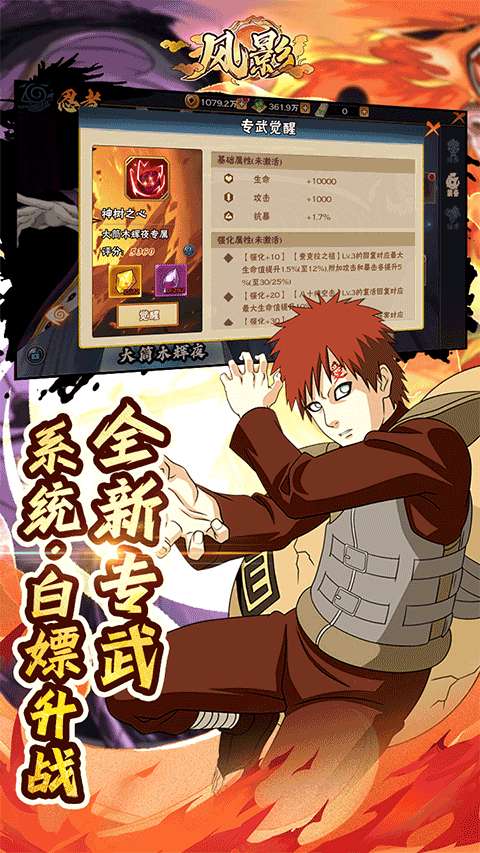 收集鸣人、佐助、宇智波斑等百位忍者,通过升级、进阶、升星提升战力,解锁专属技能与背景故事。
