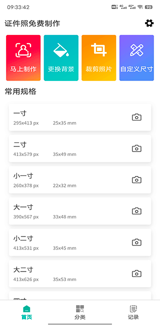 4、尺寸多样:根据不同证件照特点自动裁切照片,智能证件照轻松制作,包含国内多种证件照尺寸模板。