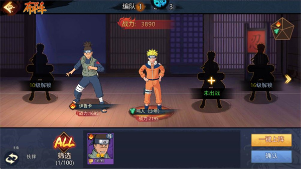 2、收集特定角色组合可激活羁绊效果,如“宇智波鼬+干柿鬼鲛”组合提升全队暴击率,鼓励玩家探索角色间的协同效应。