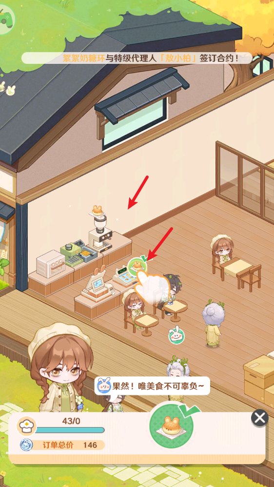 2、随后我们选择对应的设施进行制作,制作好之后点击客人即可送餐。