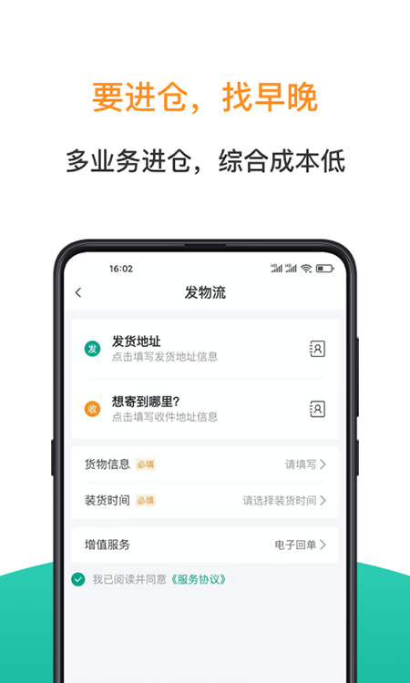 早晚发货app是一款专门为货主、司机和网点量身打造的发物流和进仓业务专用软件。这款软件是打造服务于厂家、省内省外全国性精品专线运输网络,企业通过平台更简单快速完成物流运输,提高企业物流的管理水平,提升行业服务品质,推动产业升级,成就可持续发展的物流生态圈。