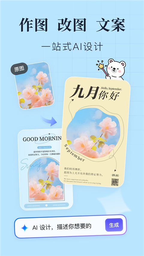 AI创作2.0:一句话描述,秒出惊艳设计稿!支持改图生图生设计!