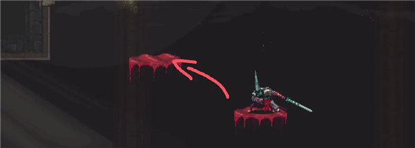 ②跳到香炉下面的平台上,然后跳去左边,开启回存档点的捷径。如果血量不够就回去存个档,但还是要回到捷径这里。
