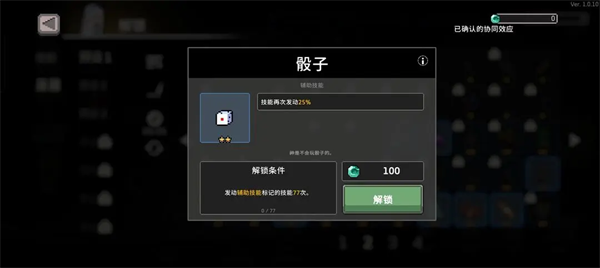 骰子需要触发77次辅助技能,前面的憎恶之刺也算辅助技能,所以你随便打打就解锁了,解锁之后把那些没用的圣器都禁掉刷天神骰