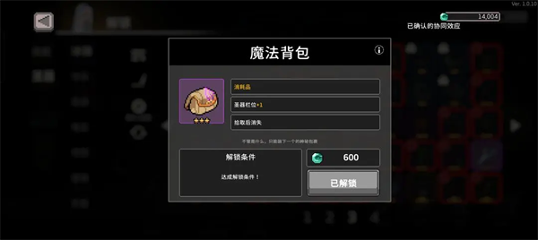 在刷图的过程中你应该也有机会拿满随便6个圣器了,自然而然就可以解锁必开圣器——魔法背包