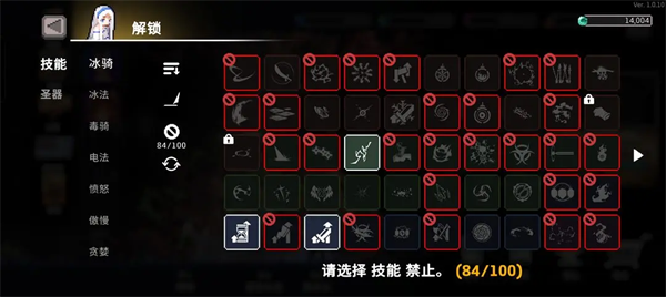 赤魔契约解锁条件:获得3种失血标记技能。这个要求特别低3个同样的失血标记技能也可以,只需要禁掉不是失血的技能进图获得就达成了(没必要升星只凑个数)。这里只推荐憎恶之刺,因为同时可以给另一个圣器做铺垫