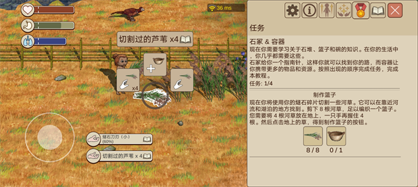 2.编织篮子,利用我们在第一部分学过的割芦苇,放四拿四,即可如下图所示点击中间按钮制作篮子;