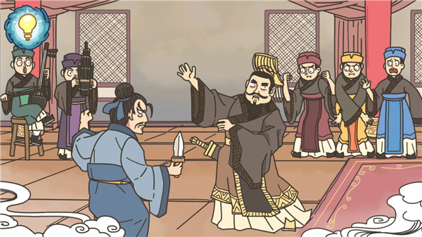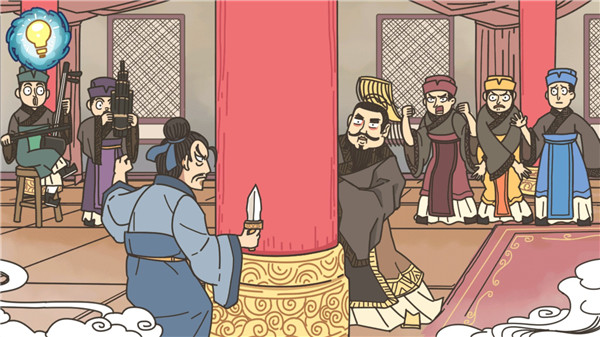 长按红柱子往右边移动,把秦王佩剑移动给荆轲,一段bgm后就通关了。