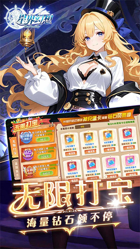 星界幻想0.05折手游是一款3D异世界冒险手游,也是一款高福利版本,不仅拥有0.05折超高优惠充值,还有高爆率、上线就送10亿元宝、超级盲盒,大量钻石等福利内容,让你玩到爽!