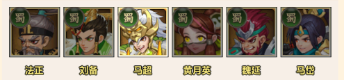 1、法正+刘备+马超+黄月英+魏延+马岱