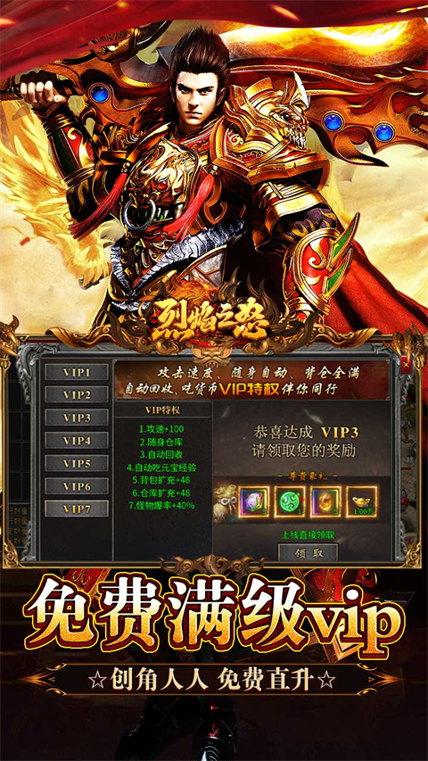 烈焰之怒是一款超变之王传奇类手游,也是散人专属版本,超大数值,一刀百万亿,不断突破超变极限!游戏上线即送称号、无限真充、全功能、100w元宝、8888黄金福利。