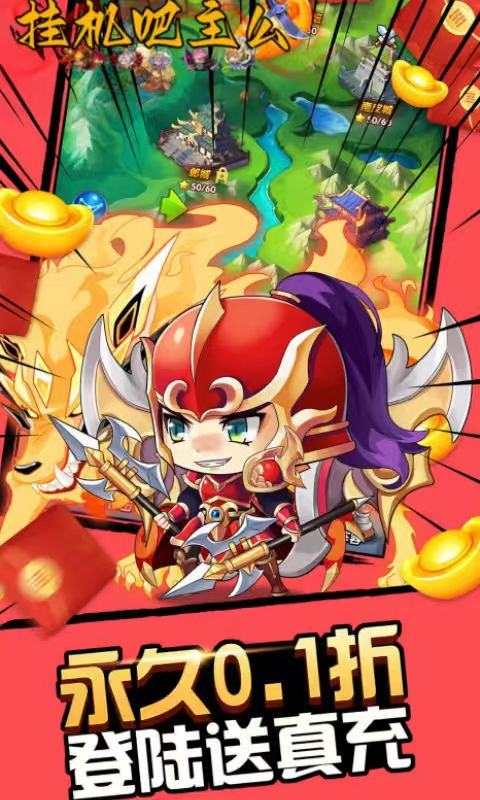 挂机吧主公0.05折版是一款竖版卡牌策略手游。游戏以三国时期为背景,众多经典名将皆在此齐聚,玩家将化身主公,开启乱世的冒险之旅。挂机吧主公游戏内玩家需要招募并培养祝融、郭嘉、曹操、夏侯惇等三国名将,并组成专属推图流派,参与各种战役,平定乱世。挂机吧主公游戏还设有公会玩法,玩家可创建或加入公会,与公会成员一起征战四方,体验别样的三国冒险。