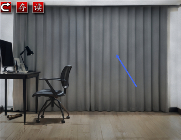 1、进入游戏,先来到有客厅场景,点击窗帘可以拉开查看。