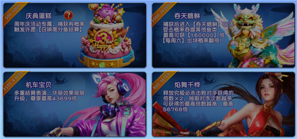 精美3D特色炮台,搭配华丽主题翅膀,更可享受特权福利加成,让你成为渔场中最靓的仔!