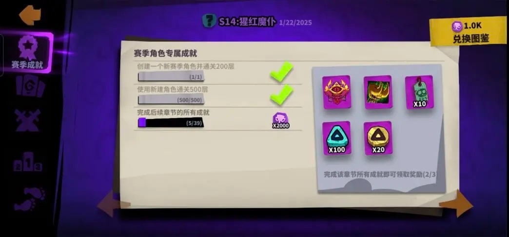 赛季界面领取通关200层给的500赛季币。