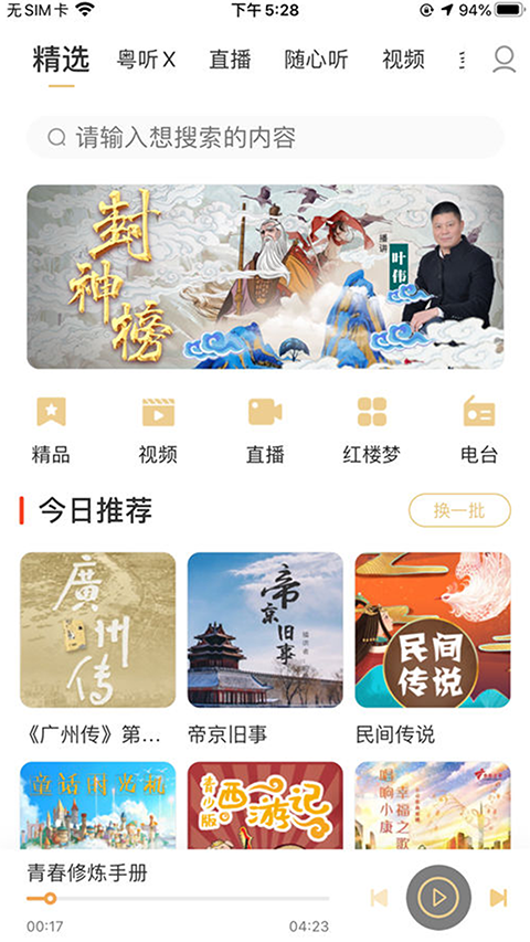 粤听电台App是一款宣扬粤语传统文化的移动平台,它不仅提供传统电台节目和优质多样的节目内容,还有直播、点播、专业化的课堂,且听众可与主持人、嘉宾进行互动。粤听电台app还会根据用户个人爱好进行精准的节目推荐——根据用户个人添加的兴趣标签及每次点击的音频,针对性推荐相关的音频给每一位用户,实现个性化的内容推送!