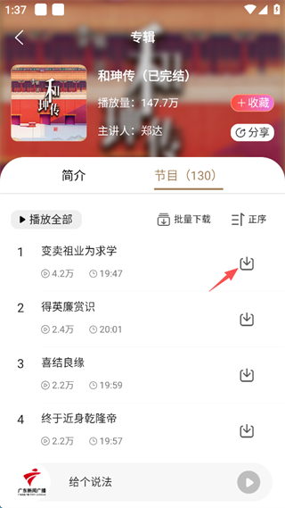 3、点击想要下载节目右侧的“下载”标识,即可下载 。
