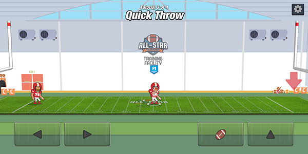 基情橄榄球2将平面的橄榄球场变成了只有横坐标的横板球场,因此玩家们如果想要穿过敌方的防守,就只能善用传球技巧了,而不是通过平常的走位来实现,这对玩家们来说也算是个不小的考验。当然,如果你在赢得比赛后所获取的卡包中能够开出属性加成更强的装备或者是各项能力更加全面的球员,那么你在橄榄球比赛中就会有着更好的发挥!