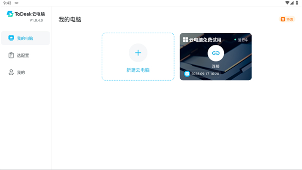 ToDesk云电脑HD版是一款专为安卓平板设备推出的云电脑应用,它不仅更适配平板大屏幕的操作体验,还提供高性能云电竞、AIGC藏宝地两种云电脑体验,其中包含多种高、中、尊享、顶级配置套餐选项,用户可以根据使用需求体验。ToDesk云电脑HD的云电竞主要适用3A游戏客户端,无需下载即可游玩,而AIGC中则是偏向于办公软件,可满足不同用户类型使用场景。