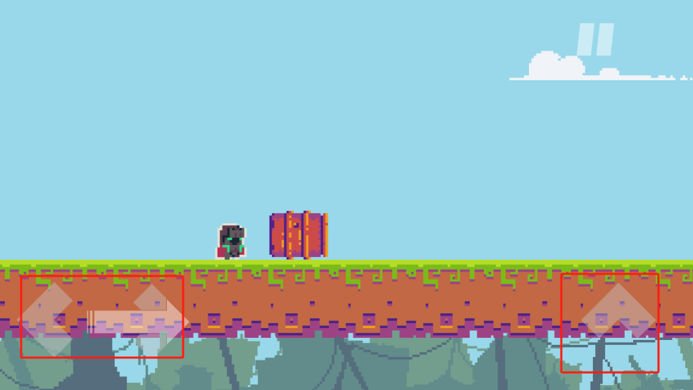 2、游戏操作简单,左侧按钮控制角色前后运动,右侧按钮控制角色跳跃