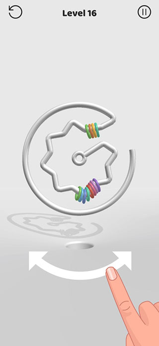 3、不断摸索不同的方向并保障其中金属环的变化,顺利的通过各个关切的挑战顺利完成各个难度让圆环落下来。