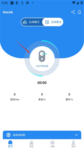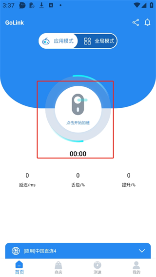 1、打开GoLink手游加速器,点击开始加速
