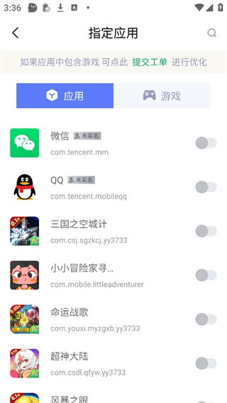 3、选择要加速的软件或者游戏