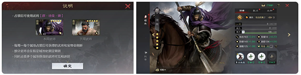 -城池占领占领城池可获专属武将、宝物(夜明珠、罗绮香囊等)每周一刷新奖励。东平专属武将