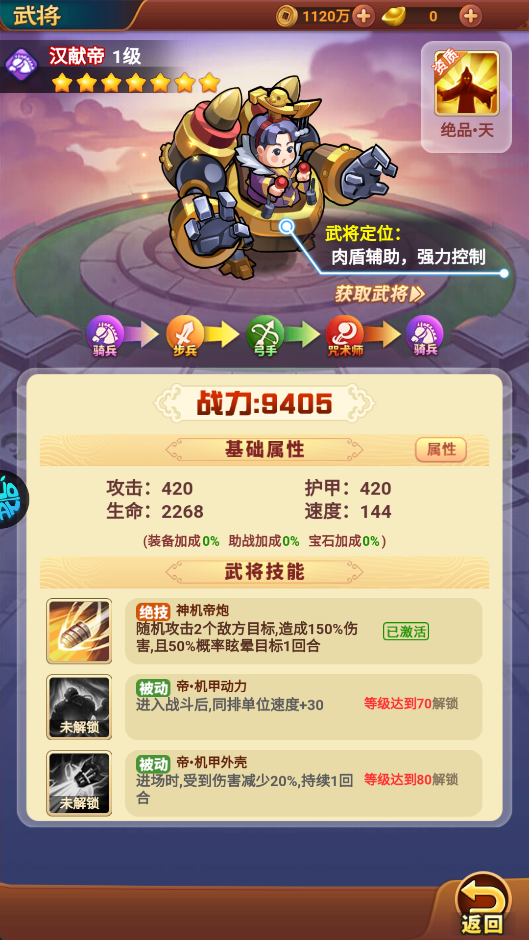 随机攻击2个敌方目标,造成150%伤害,且50%概率眩晕目标1回合