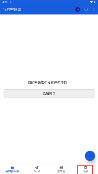 1、导航至“我的密码库”选项卡,然后选择“添加项目”。