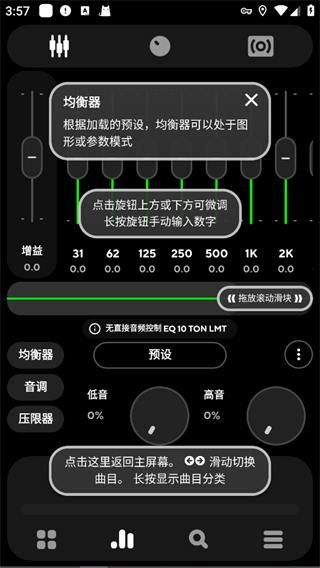 均衡器功能强大,支持图形和参数模式调整,还有10+段优化的图形均衡器。软件还支持动态排序、嵌入式.cue文件播放以及Android Auto连接等功能。