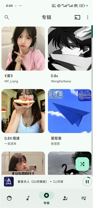 4、或者点击专辑,每一个专辑都有不同的音乐