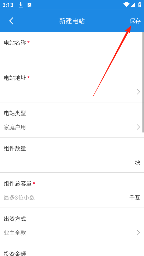 3、填写好电站信息之后,点击保存即可成功添加