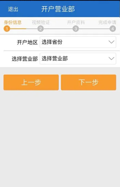 4、选择开户地区、选择营业部(列表),点下一步进入“视频见证”。