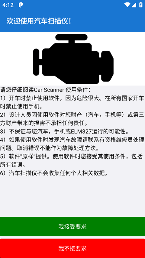 2、接着阅读下方Car Scanner使用条件,点击我接受要求;