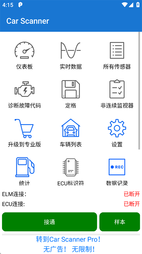 这款汽车扫描仪(Car Scanner ELM OBD2)是个挺实用的工具,能帮助车主更好地了解爱车状态。它支持读取故障码、清除错误信息,还能实时监控车辆的各种参数,比如传感器数据和发动机状态。软件操作简单,界面友好,适合新手使用。