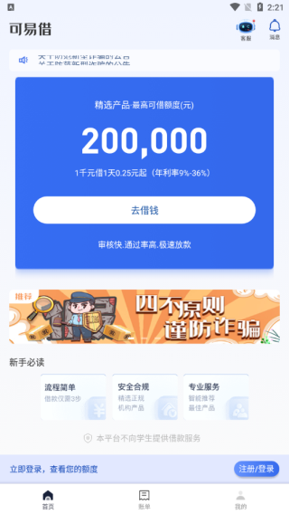 可易借,也叫“万达普惠app”这是一款专业的借钱贷款软件,具备纯信用、无抵押、线上申请、快至三分钟放款等优势和特色,为用户提供更方便快捷的线上信贷服务。同时该软件提供一种简单、快捷、安全的贷款方式,让您能够轻松应对各种生活场景,如:购物贷款功能让您能够随心所欲地购买心仪的商品;求学贷款功能将帮助您实现更高的学术目标;结婚贷款功能将为您打造一个难忘的婚礼;装修贷款功能将为您分担经济压力;购车贷款功能也将助您一臂之力。