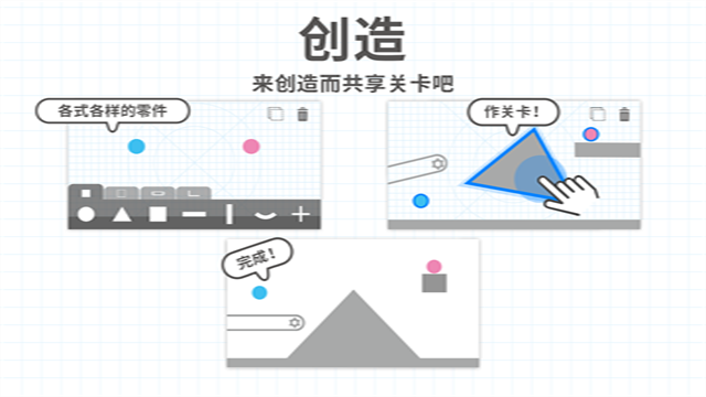 要想过关,只需要使蓝球和红球相撞。自由划线可以让球滚动,你的想象力是过关的关键。