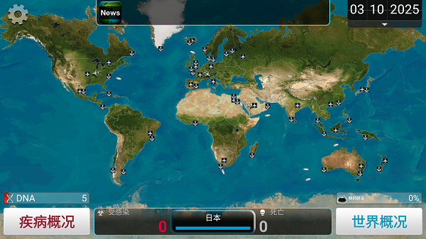 日本作为一个人口密度高,又有飞机轮船的岛上贸易国家,开局优势是非常大的,当然了,日本的医疗技术是非常高的,所以在开局时一定要先进化成一些抗药性,然后在选择空气传播进化,靠着交通工具进行传播。