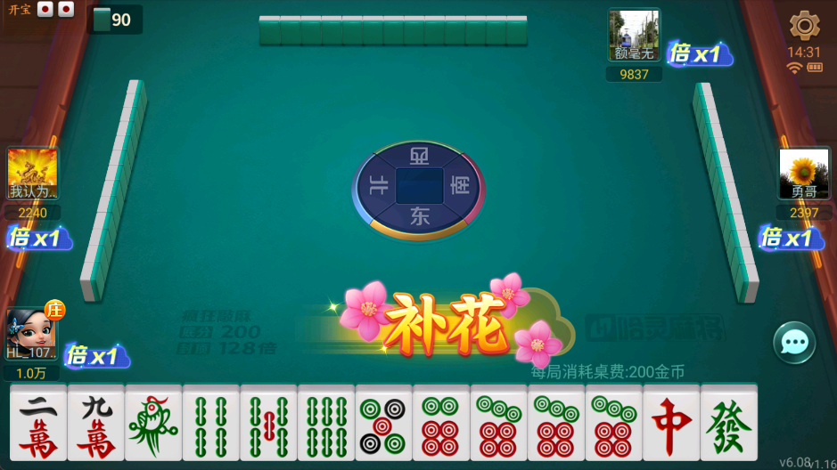 玩法要点:每局选出一张百搭;花牌范围较广,共计20张(含中、发、白与四季花卉等)。