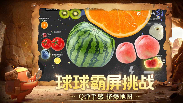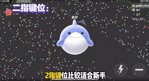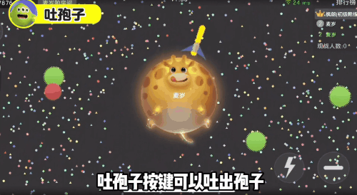 1、对局中主要由3个键位控制,分别是摇杆、分身和吐孢子键。其中摇杆是控制球体移动方向,确保球宝能够指哪打哪~