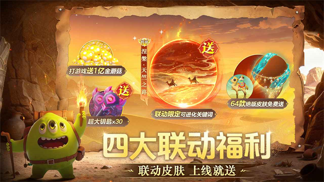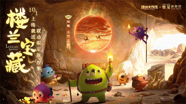 《球球大作战》10月1日邀你来一场穿越千年的楼兰大冒险!波拉哩考古小分队整装待发!2V2巨星决斗场玩法全新上线!!登录领限定可进化关键词「涅槃·天竺之路」,1亿金蘑菇寻宝免费送!速来领取国庆最强福利,畅玩球球~
