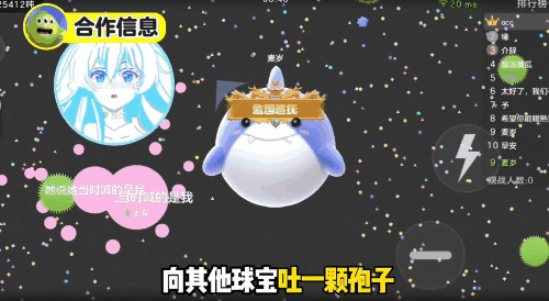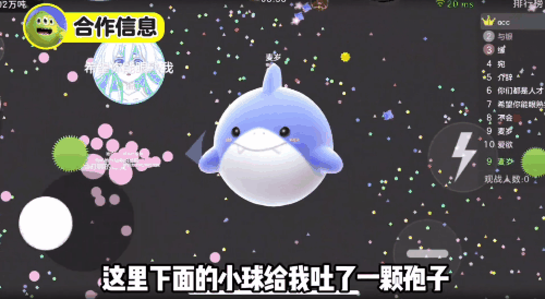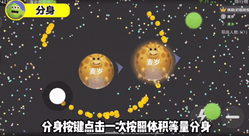 2、分身键可用来追击吞噬小球,或是后期跟队友合作秀操作~