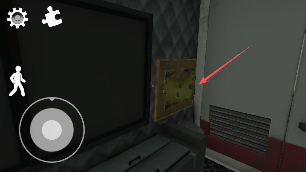 2、玩家需要使用地图中道具逃离这里,点击右边"手"拾取道具,点左边人图标可以下蹲;