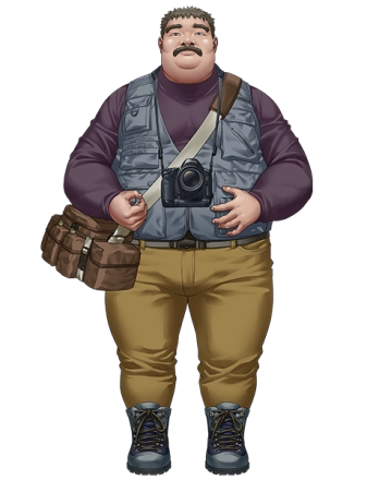 简介:42岁,摄影师。体格硕大,非常可靠且极具有逻辑性,武力也很强,高配版房石阳明。和马宫久子是工作搭档,一起来到休水取材。