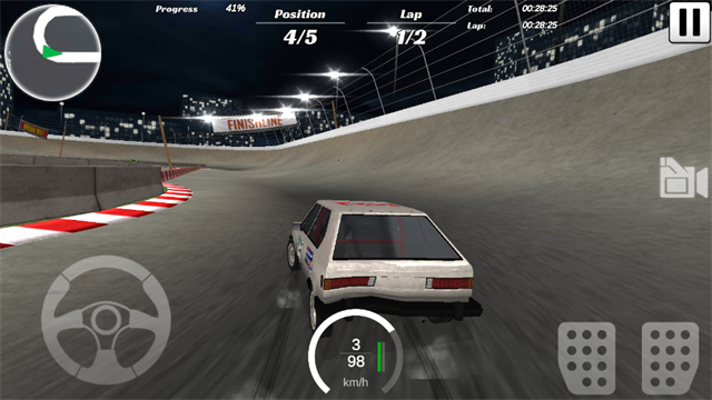 左侧移动,右侧加速和后退档位非常的中规中矩,支持触屏、摇杆和方向盘转动三大操控方式可自由切换,而且根据不同的条件还能进行亮灯和不同视角的切换,从而让赛车的碰撞更具代入感。
