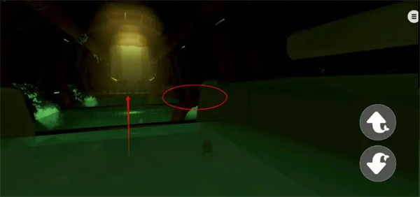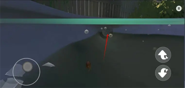 10、跟随红色箭头掉落到花丛上(否则鱼缸破碎死);然后那个缺口跳下去即可