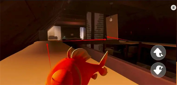 2、红色箭头把梯子撞下去然后即可抵达下个存档点;绿色头去拿面包